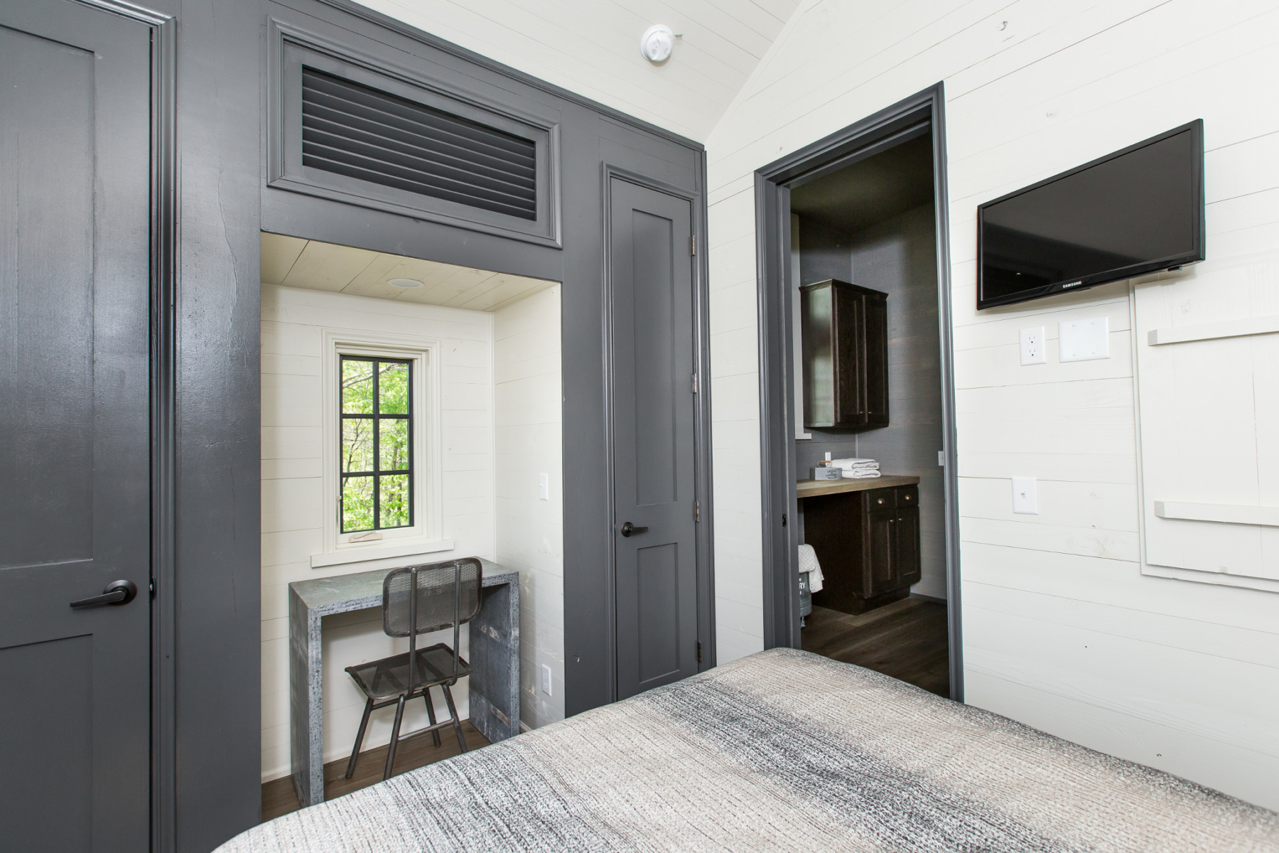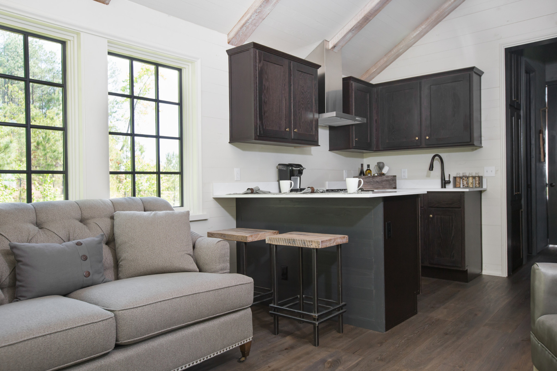 Inspired by the marshlands and coastal regions surrounding Savannah and Charleston, the Low Country offers luxury fused with simplicity. This tiny home embraces minimalism without abandoning elegance by incorporating high-end finishes like Ply Gem® aluminum clad wood windows, quality appliances from Summit Appliance®, stylish, brand-name faucets, beautiful quartz countertops and more. If you’re interested in purchasing the Low Country, learn about the purchase process.