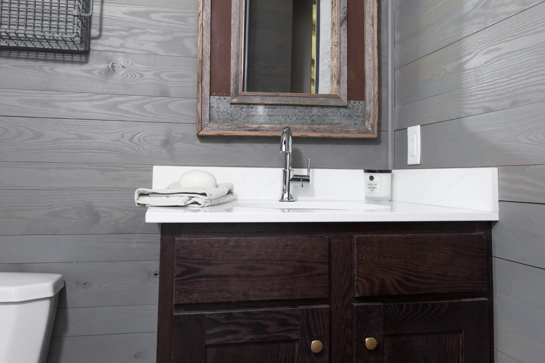 Horizontal board and batten exterior lower body/water table
